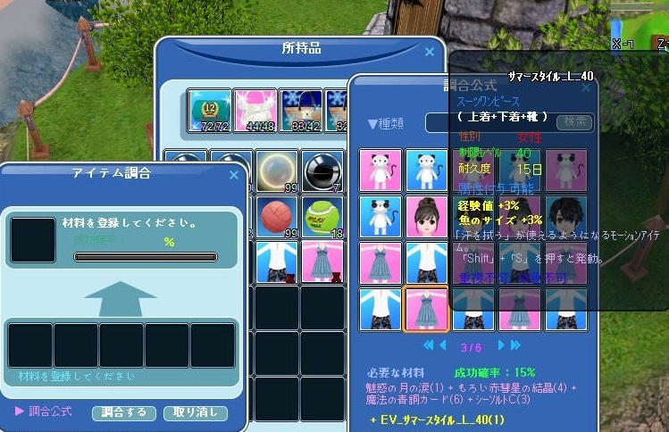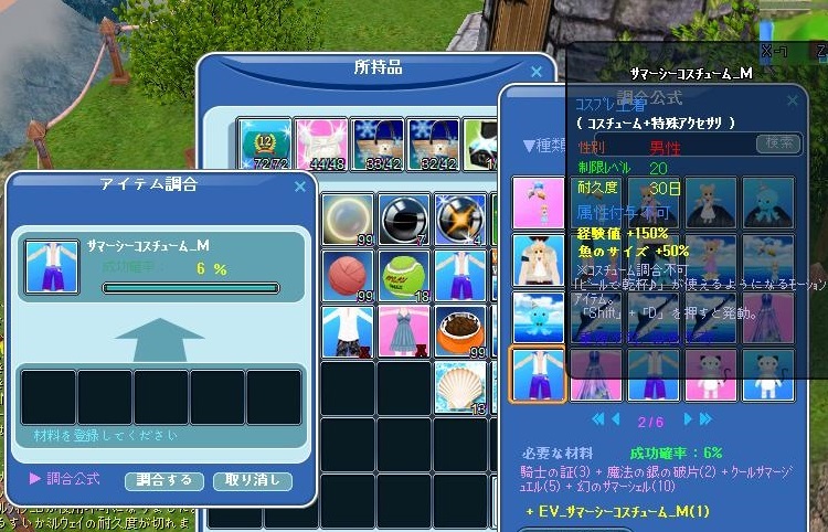 メンテ前にイベ服、MとLの2段階目に挑戦! Mは5回で成功したけど、Lは5回以上やってもダメだった><
