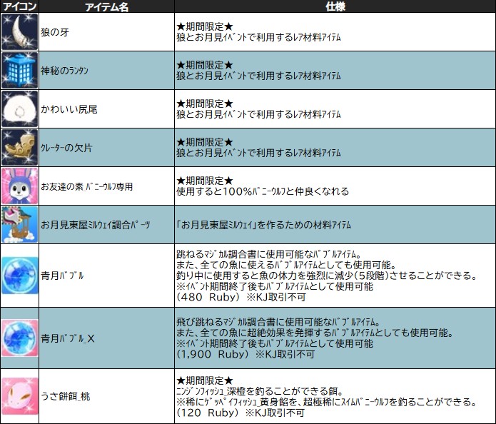 青月バブルは、狼とお月見イベントのマジカル調合に使用できるアイテムとなっております♪