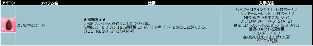 期間中にゲーム内にログインすると、「 濃いロイヤルナッツバイト 」をもれなく 1日 1個!