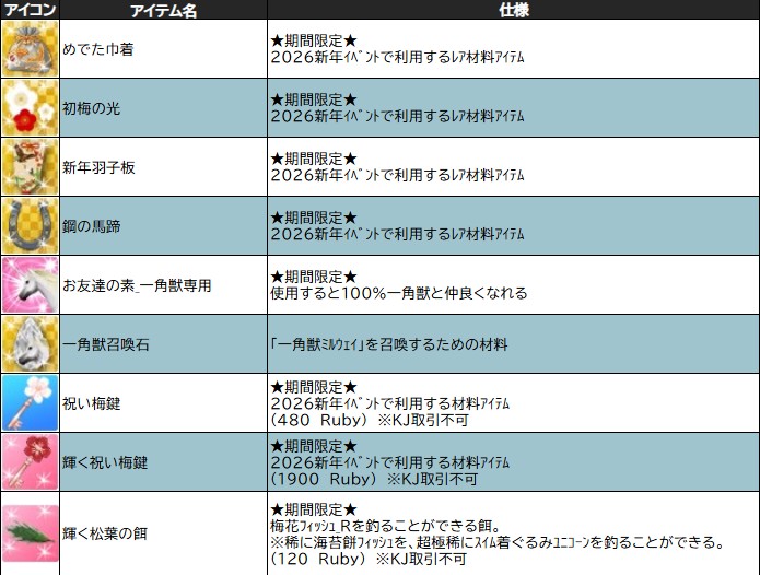 「 祝い梅鍵 」は、2026新年イベントのマジカル調合に使用できるアイテムとなっております♪