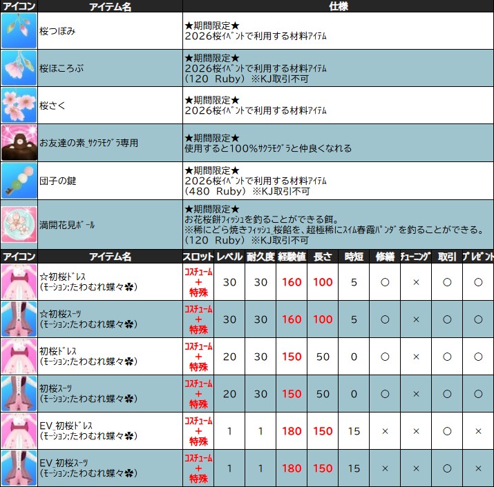 ・「 初桜ガチャチケット 」 : 「 初桜ガチャ_L(M) 」を回せるチケット。