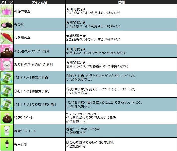 ※定期メンテナンスにて、獲得アイテムの内容が変更される場合がございますので、ご注意ください。