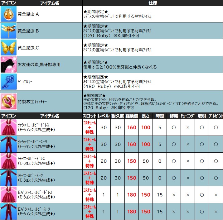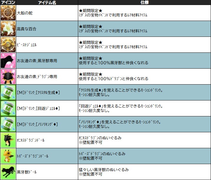 ※定期メンテナンスにて、獲得アイテムの内容が変更される場合がございますので、ご注意ください。