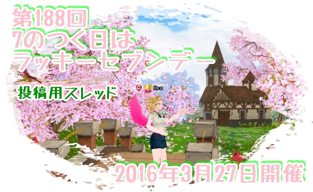 | 24896 | 【3月27日0時より8時59分まで】第188回7のつく日は... | Kco | 2016/03/26 | 374 | 2/0 | |||||||||||||||