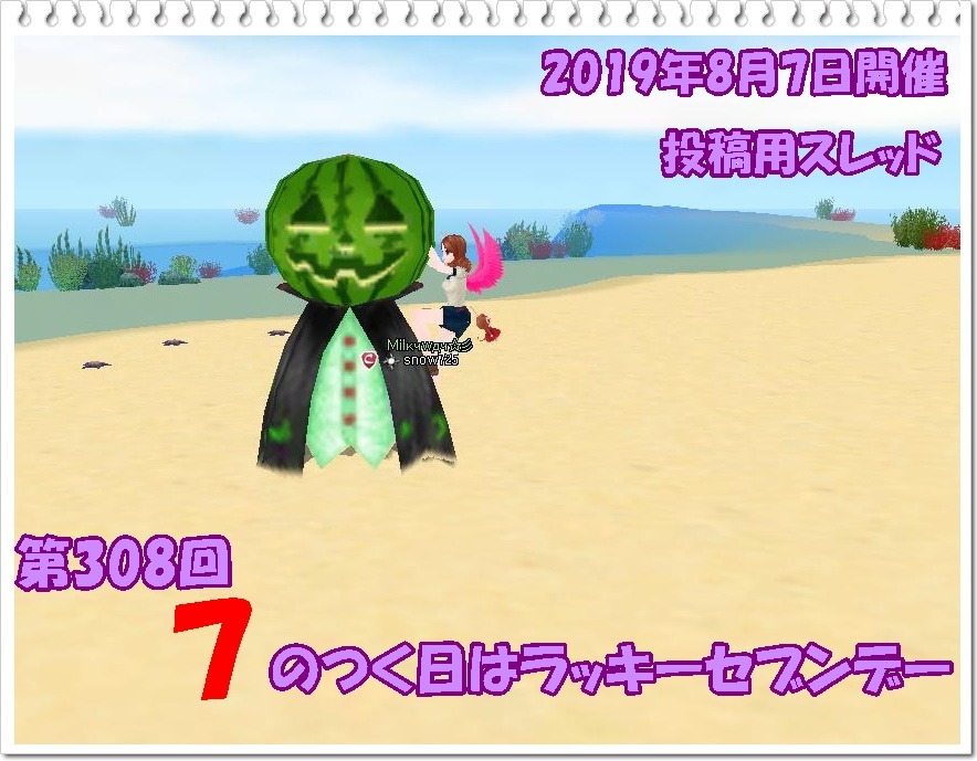 | 27736 | 【8月7日17時より19時59分まで】第308回7のつく日... | snow725 | 2019/08/06 | 382 | 1/0 | |||||||||||||||