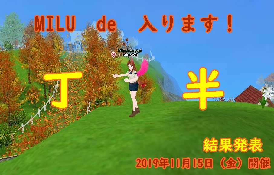 | 27862 | 【結果発表】MILU de 入ります! | snow725 | 2019/11/18 | 317 | 3/0 | |||||||||||||||