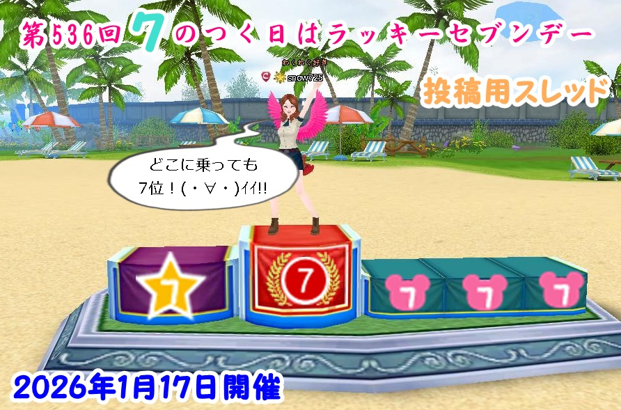 | 31033 | 【1月27日20時より23時59分まで】第537回7のつく日... | snow725 | 2026/01/26 | 34 | 3/0 | ||||||||||||||