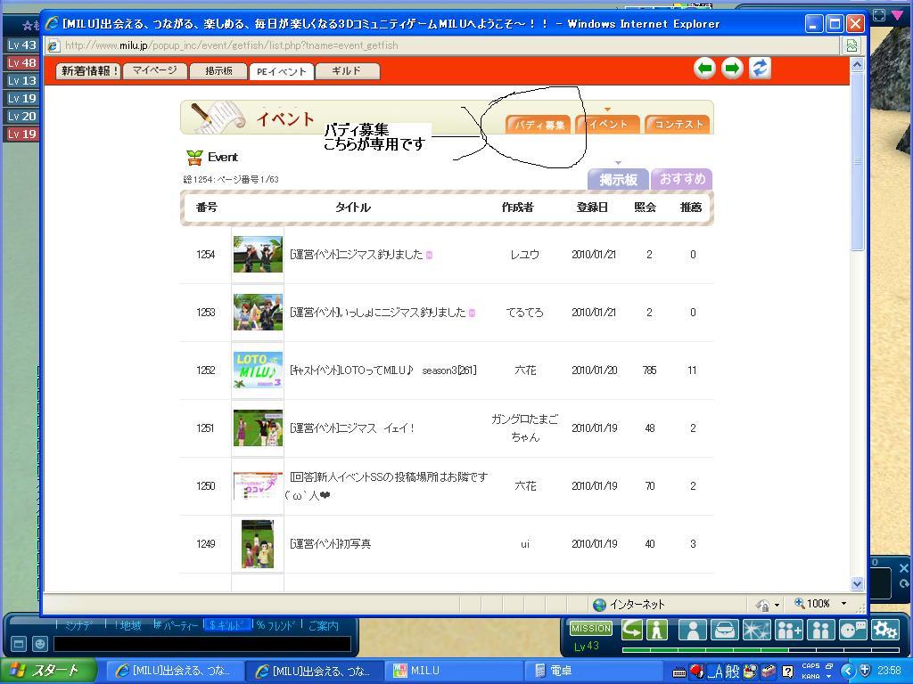 | 1254 | ギルドの仲間募集 TOPPOSITION[1] | タイヨウ | 2010/01/27 | 1,680 | 30/0 | |||||||||||||||