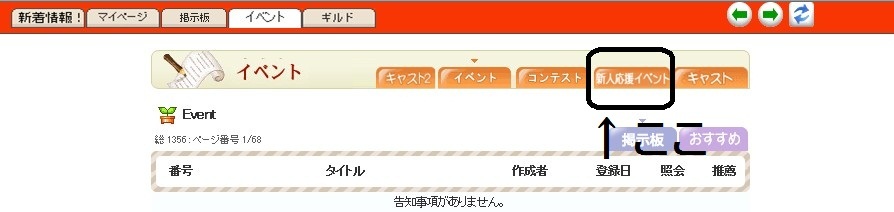 | 1420 | 新人応援イベント投稿方法[5] | 官兵衛 | 2010/04/03 | 1,738 | 37/0 | |||||||||||||||