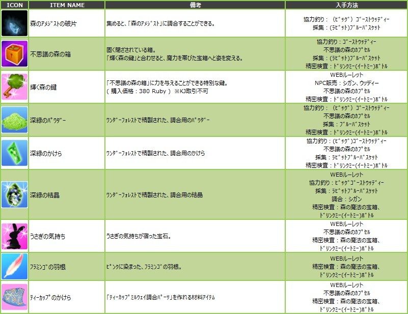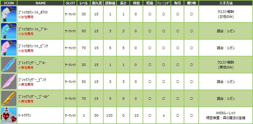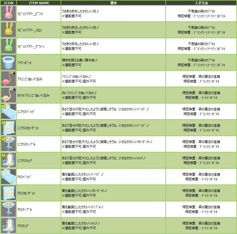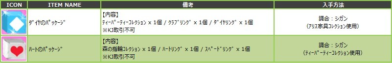 ※今回は、アイテムのレア度の記載がございません事を、ご了承くださいませ。