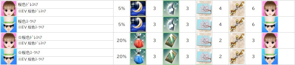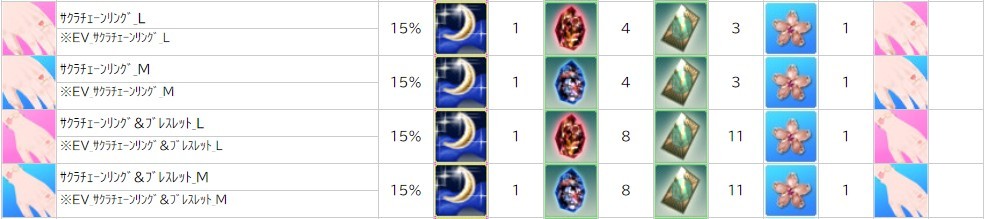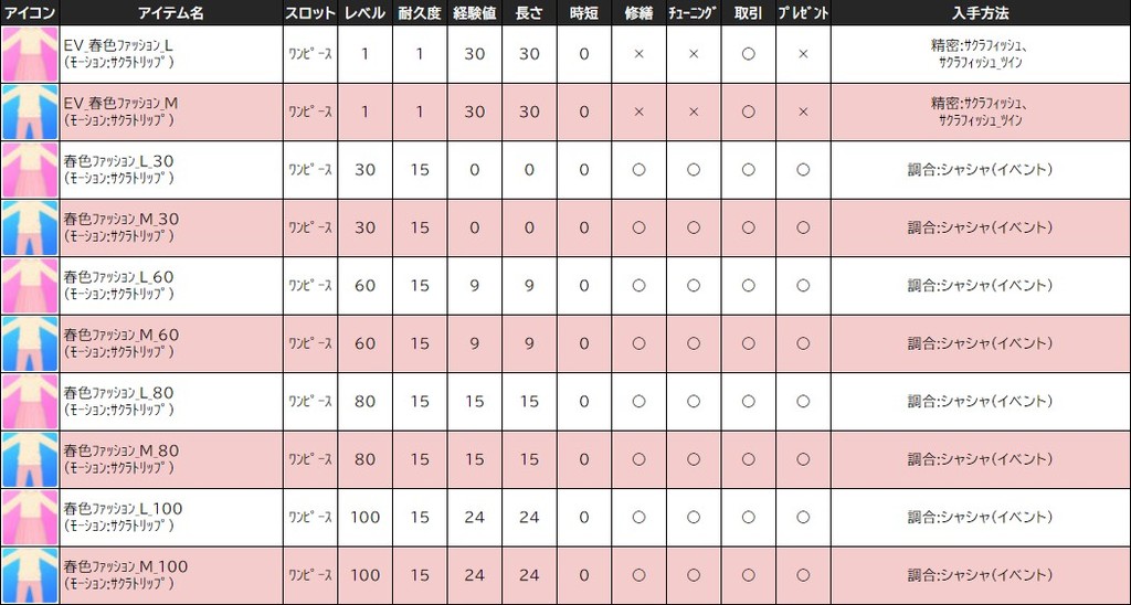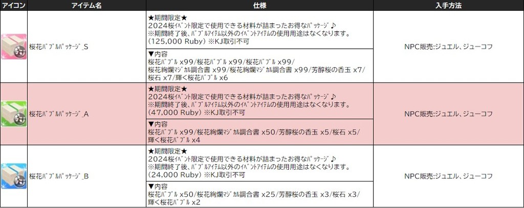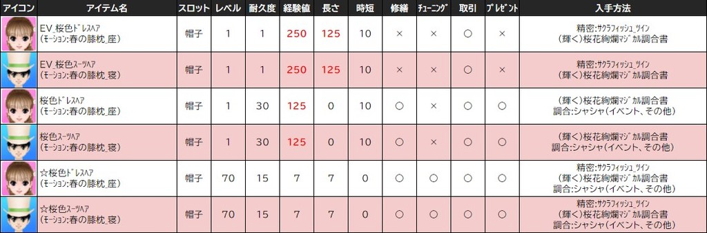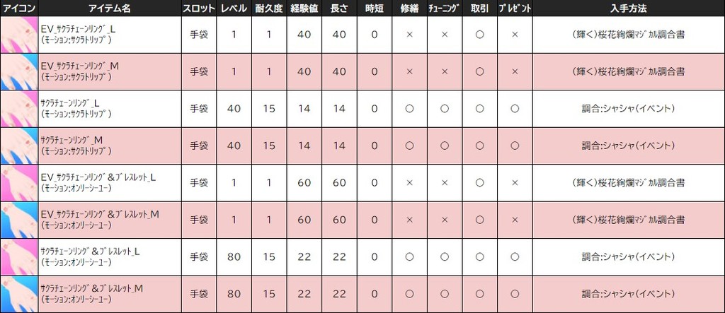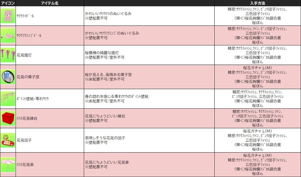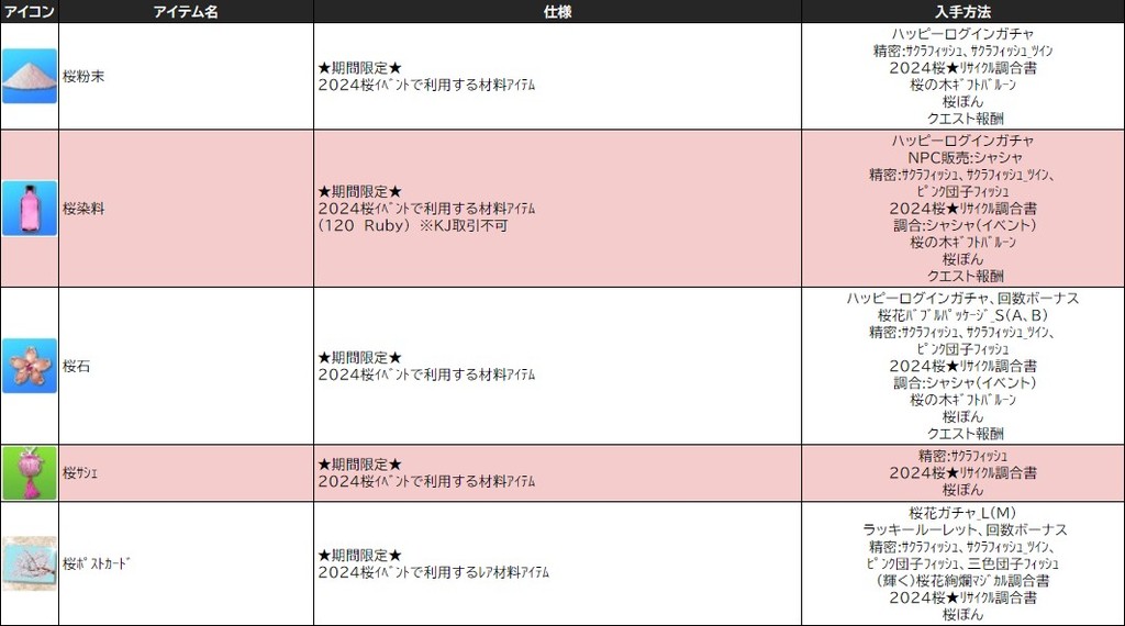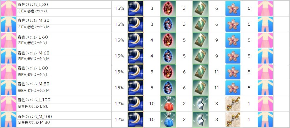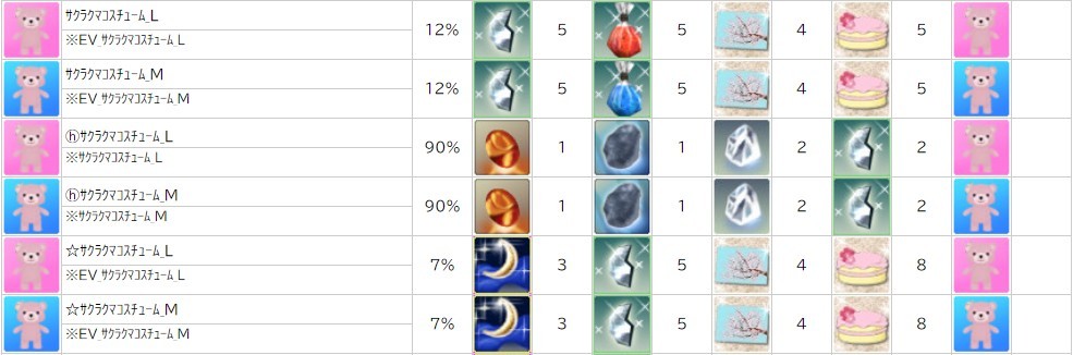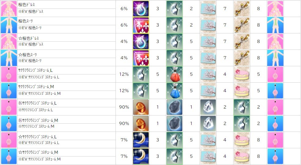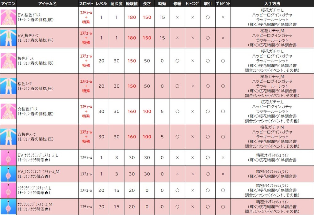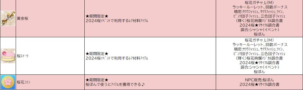 各表は、クリックする事で拡大表示されます。○ 2024桜イベント ~ 1週目 ~ のアップデート告知はコチラ♪ ┗ https://www.milu.jp/news/notice_read.php?idx=26146