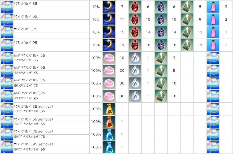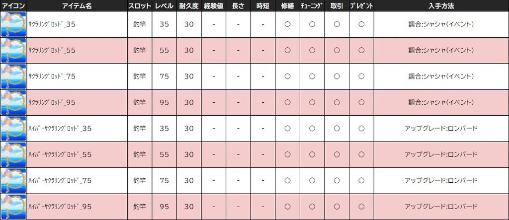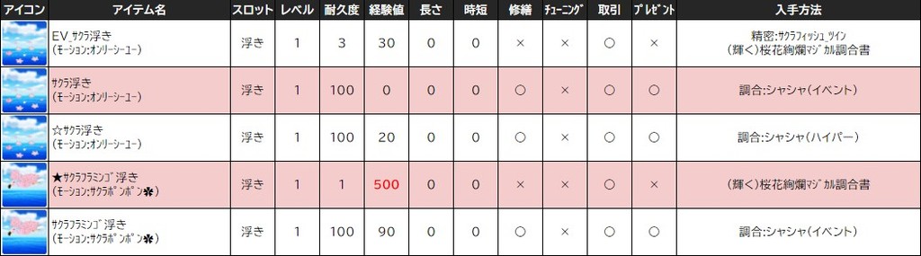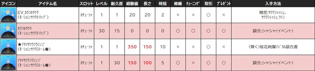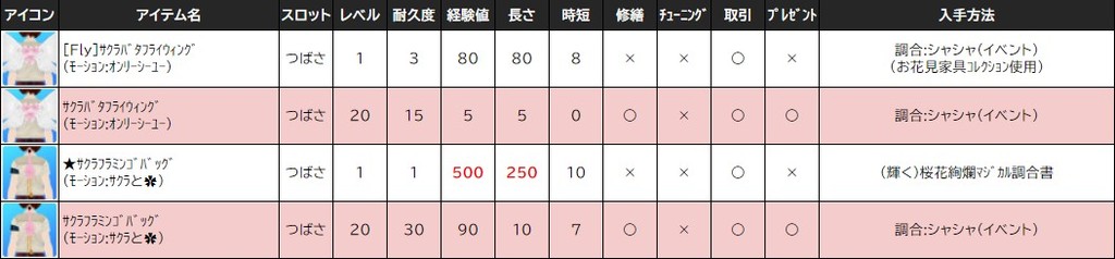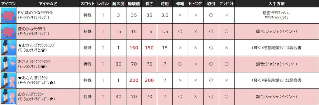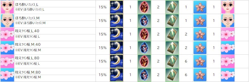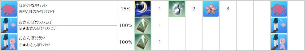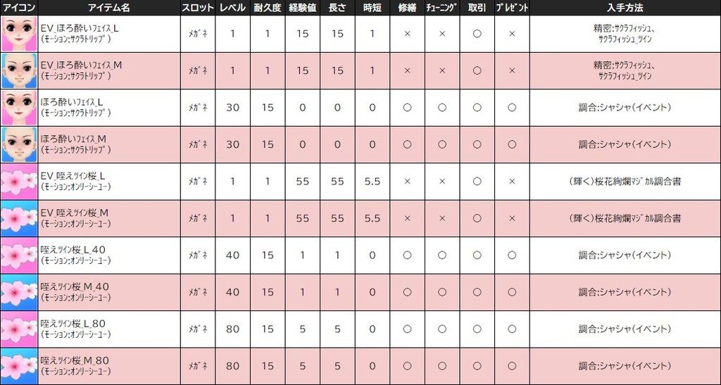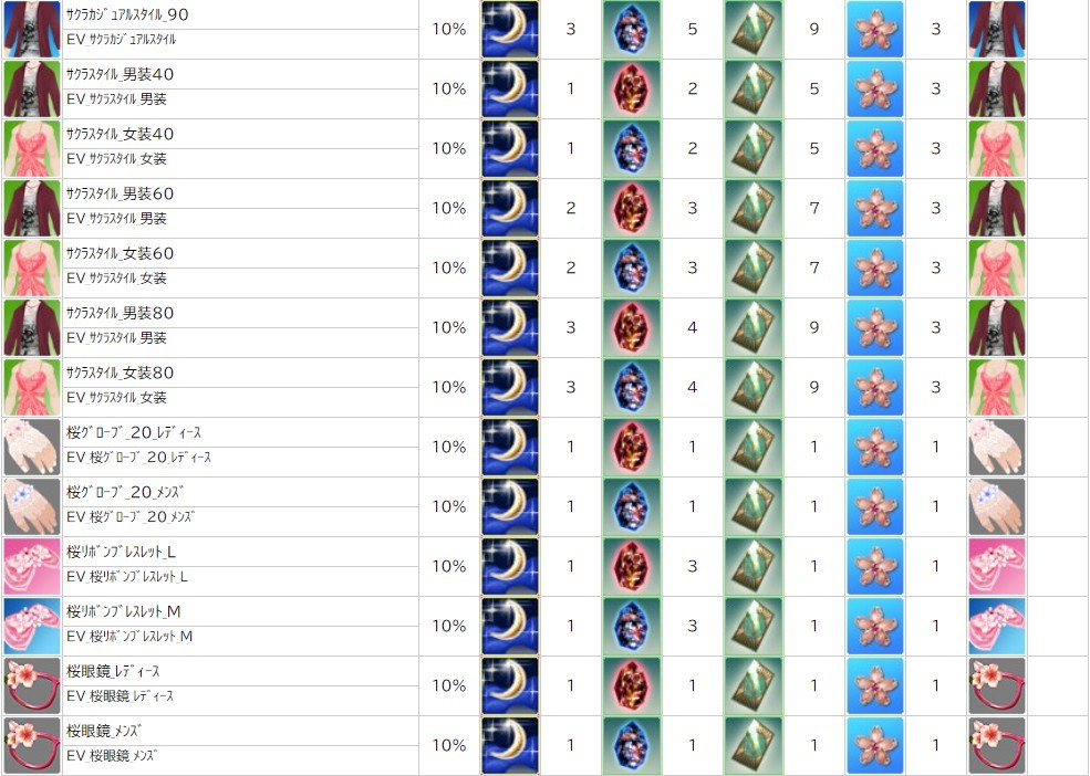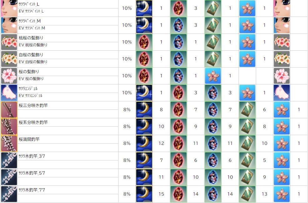 各表は、クリックする事で拡大表示されます。○ 2024桜イベント ~ 1週目 ~ のアップデート告知はコチラ♪ ┗ https://www.milu.jp/news/notice_read.php?idx=26146