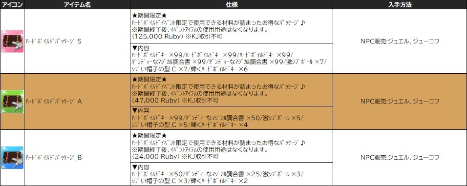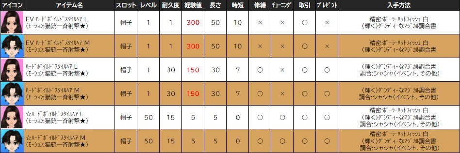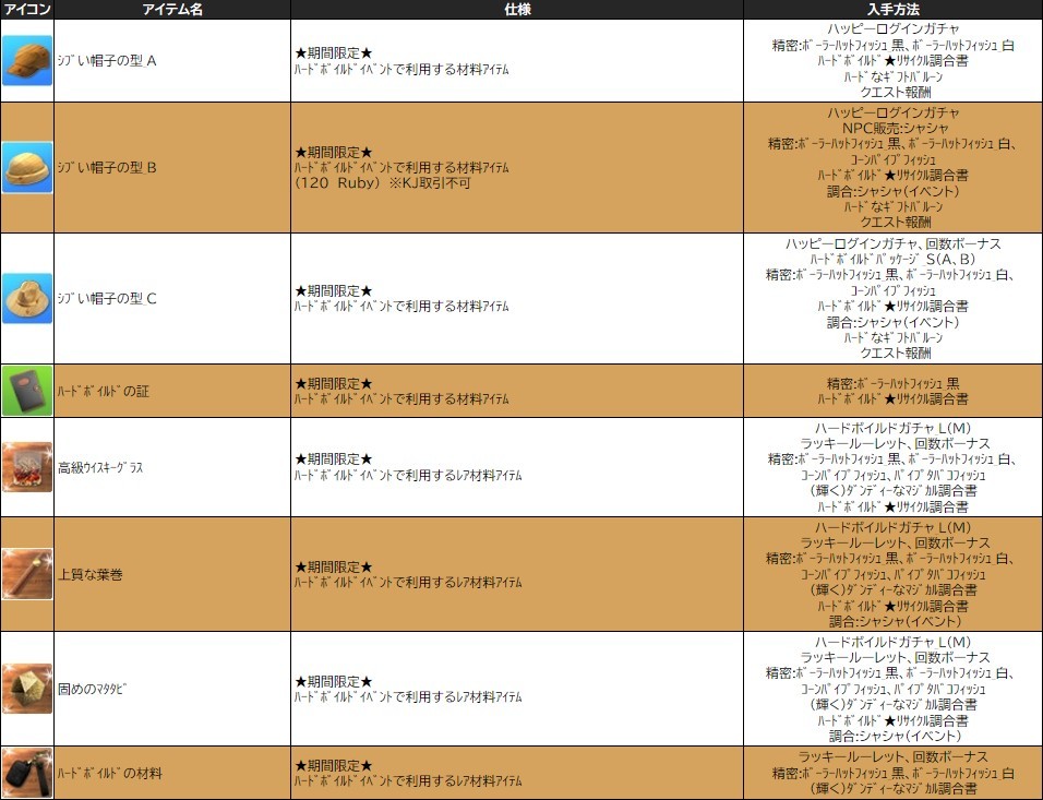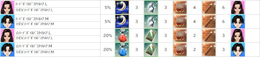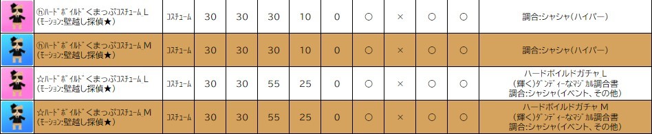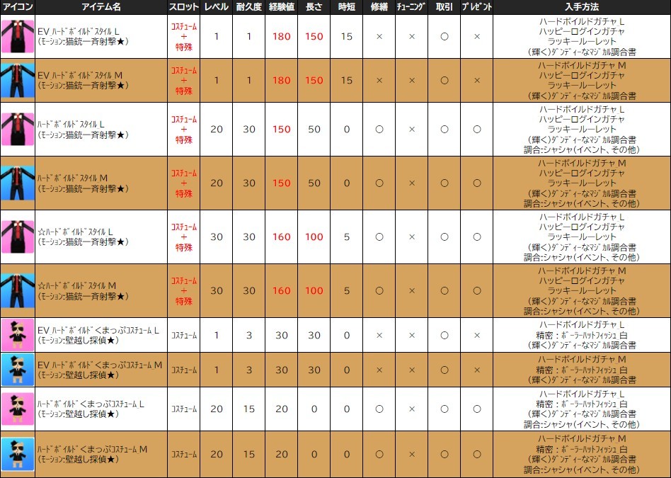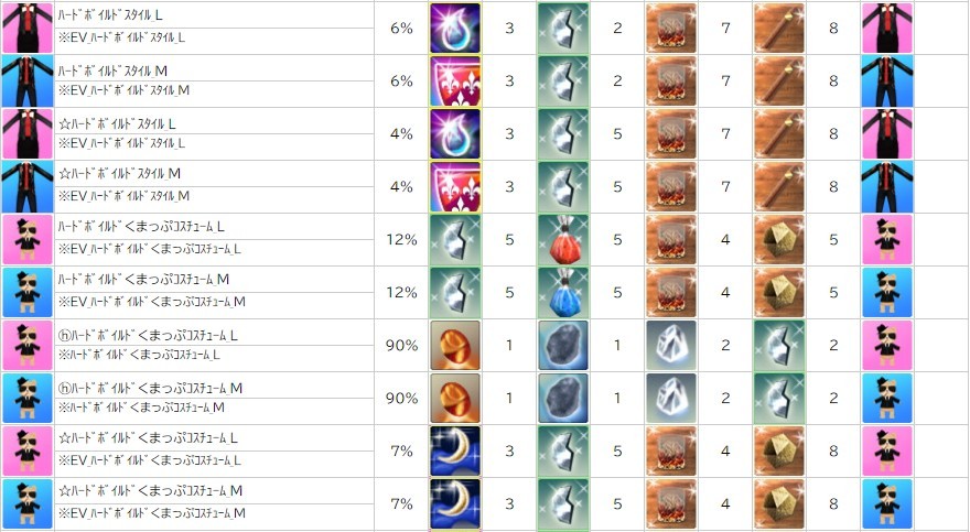 各表は、クリックする事で拡大表示されます。○ ハードボイルドイベン のアップデート告知はコチラ♪ ┗ https://www.milu.jp/news/notice_read.php?idx=26181