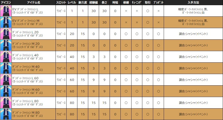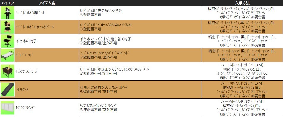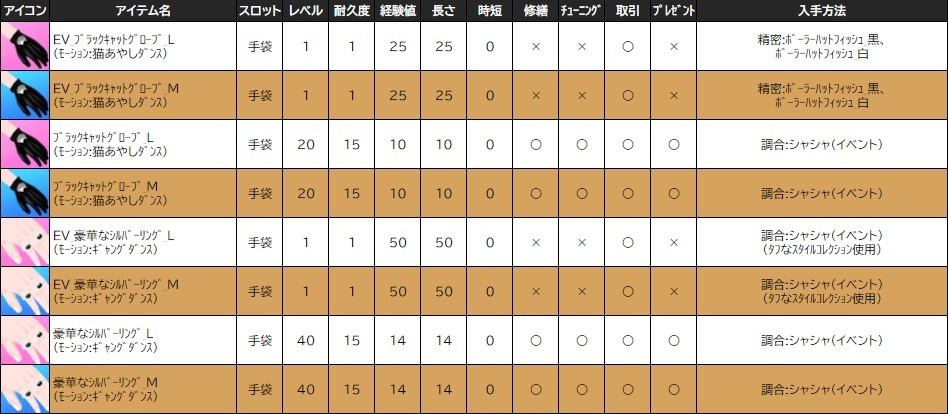 ※一部アイテムは男女性別を変更する調合公式があります。シャシャの調合メニューより、「その他」をご確認ください。