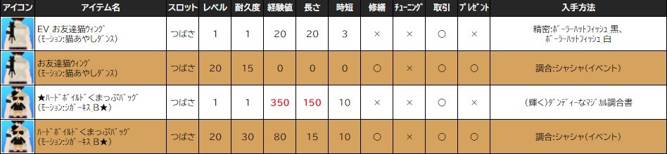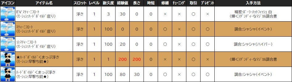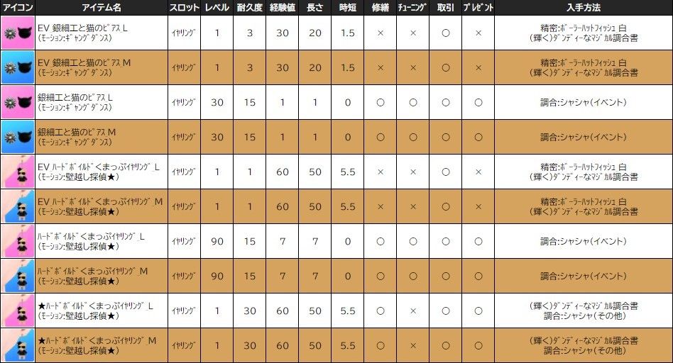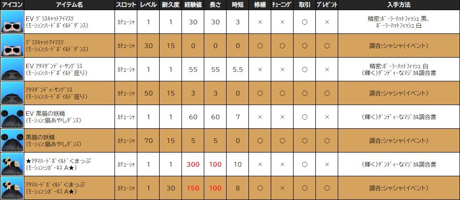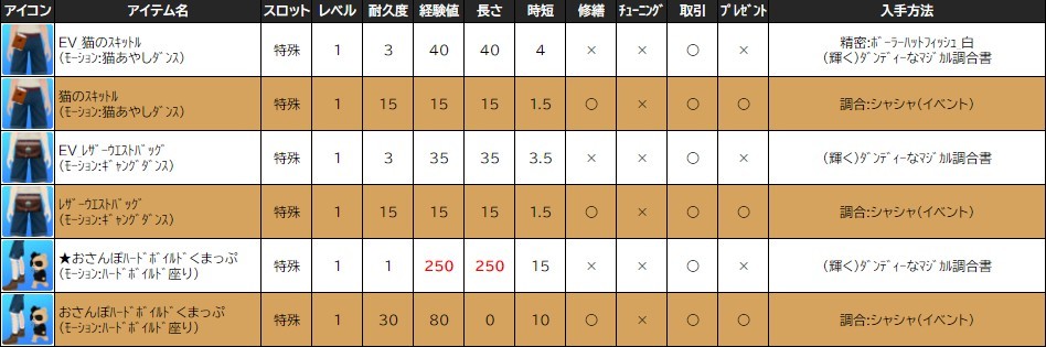 ※一部アイテムは男女性別を変更する調合公式があります。シャシャの調合メニューより、「その他」をご確認ください。