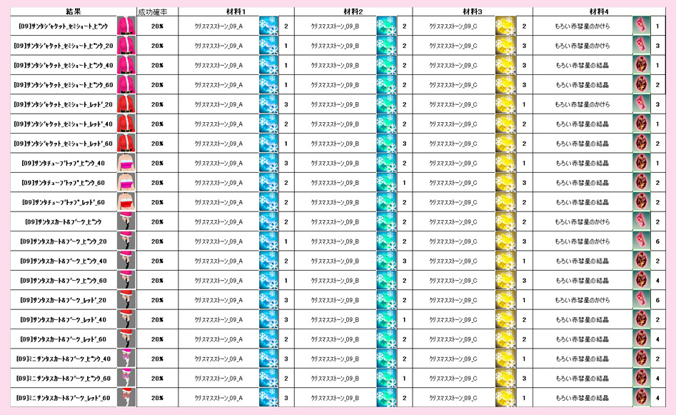| 494 | <追記有>クリスマス限定調合公式(男性用サンタ... | GA★あやぱん | 2009/12/20 | 6,071 | 20/0 | |||||||||||||||
