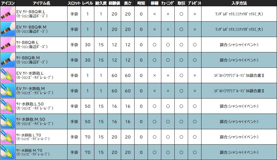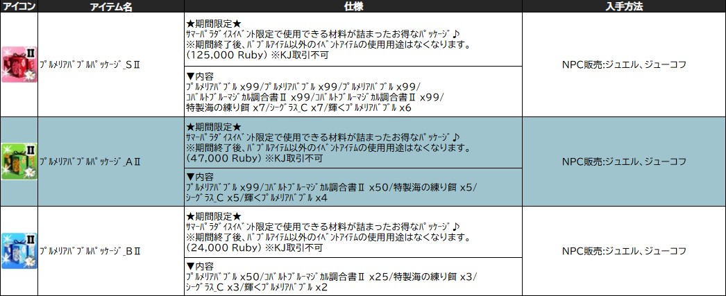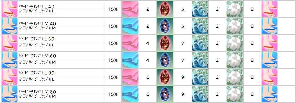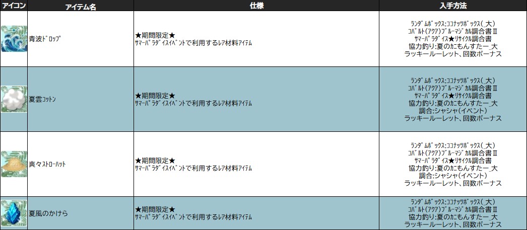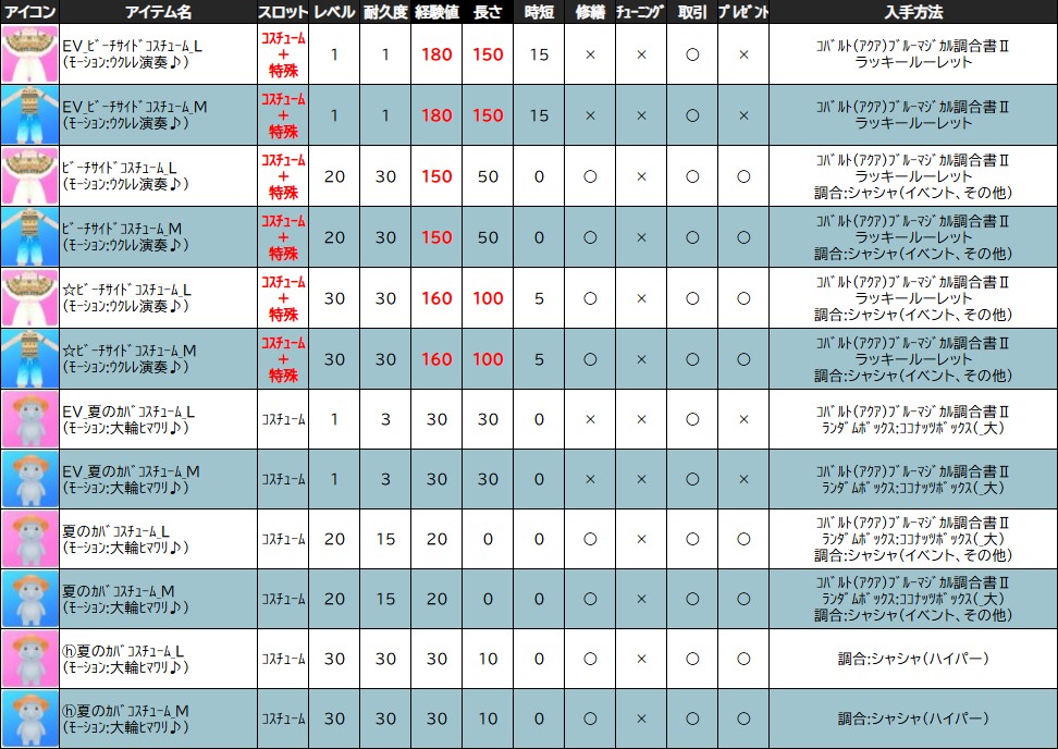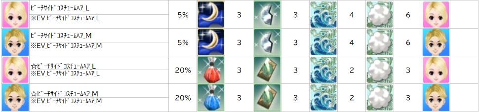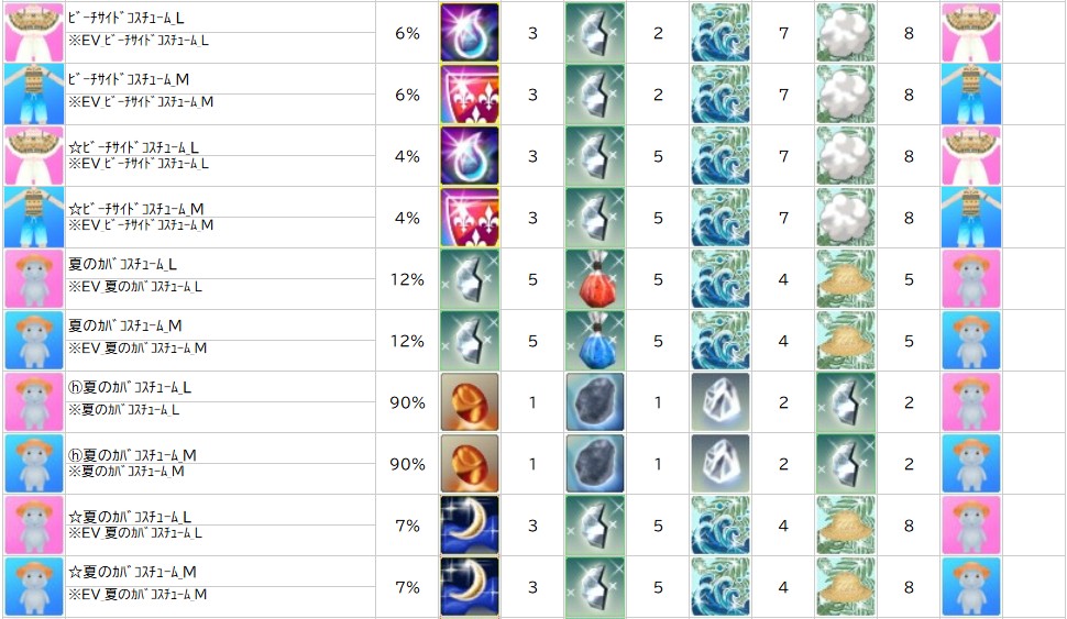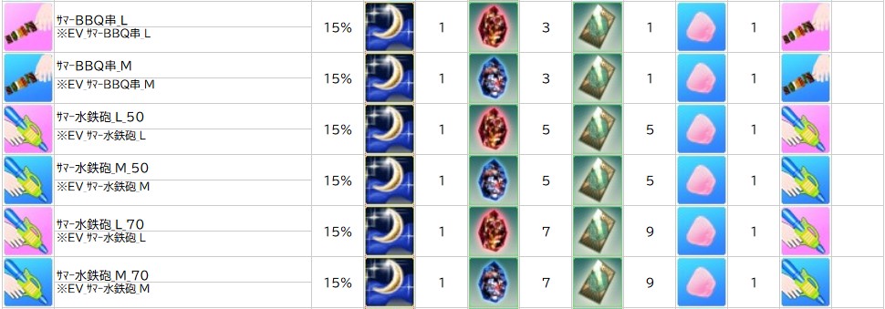 各表は、クリックする事で拡大表示されます。○ サマーパラダイスイベント ~ 2週目 ~ のアップデート告知はコチラ♪ ┗ https://www.milu.jp/news/notice_read.php?idx=27858