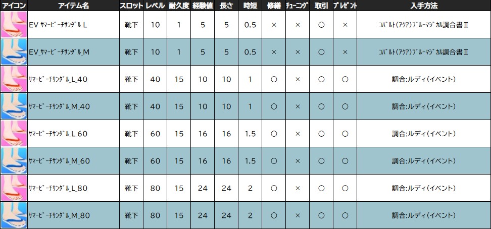 ※一部アイテムは男女性別を変更する調合公式があります。シャシャの調合メニューより、「その他」をご確認ください。
