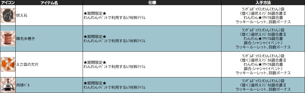 20250924 狼とお月見イベント アイテム&調合公式... |