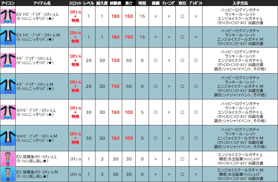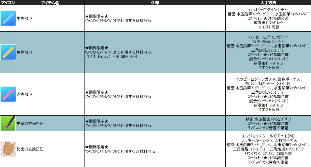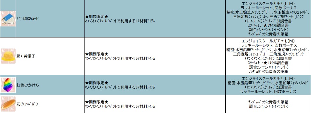各表は、クリックする事で拡大表示されます。○ わくわくスクールイベント ~ 週目 ~ のアップデート告知はコチラ♪ ┗ https://www.milu.jp/news/notice_read.php?idx=28084