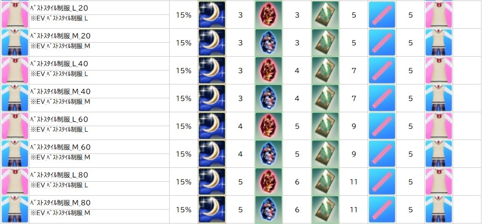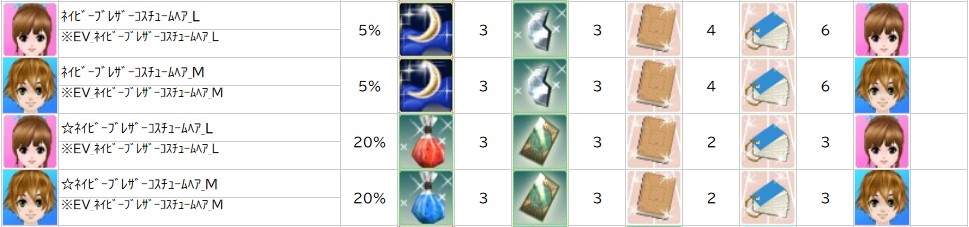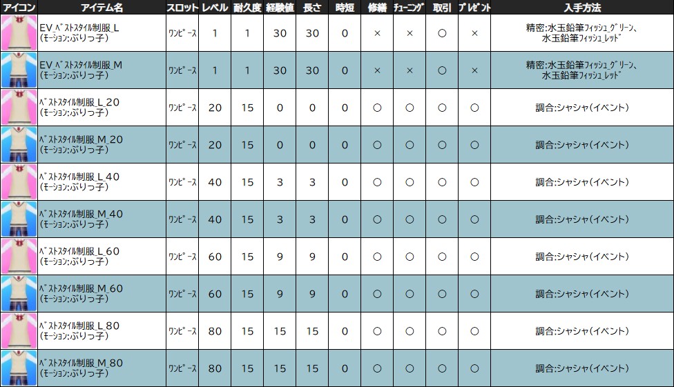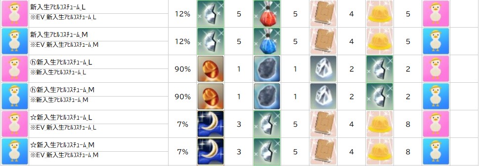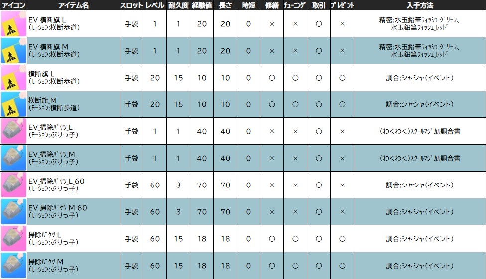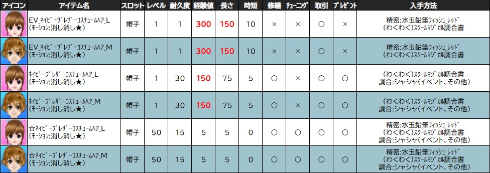 ※一部アイテムは男女性別を変更する調合公式があります。シャシャの調合メニューより、「その他」をご確認ください。