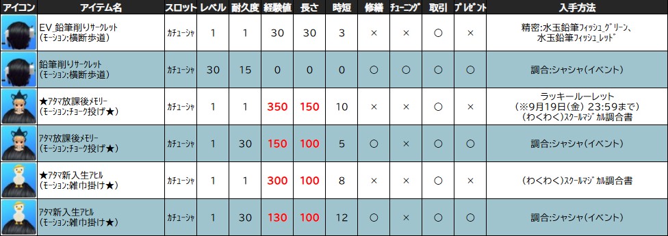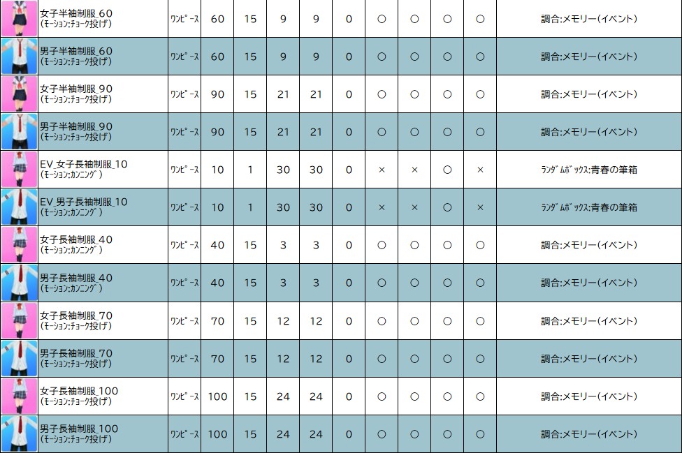 各表は、クリックする事で拡大表示されます。○ わくわくスクールイベント ~ 週目 ~ のアップデート告知はコチラ♪ ┗ https://www.milu.jp/news/notice_read.php?idx=28084
