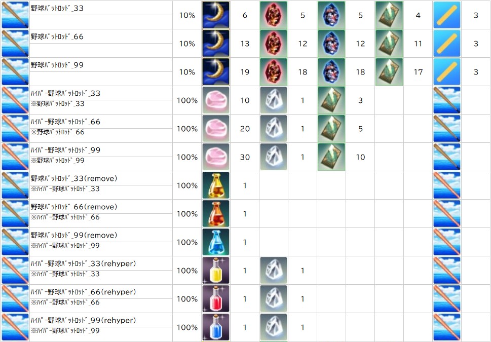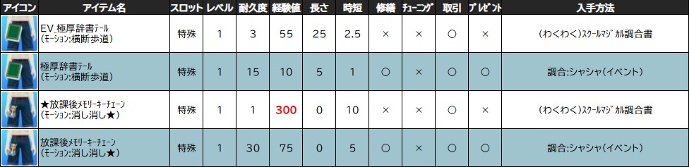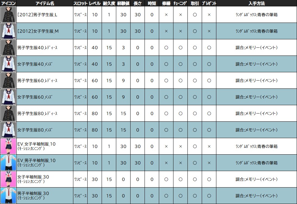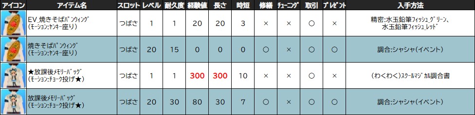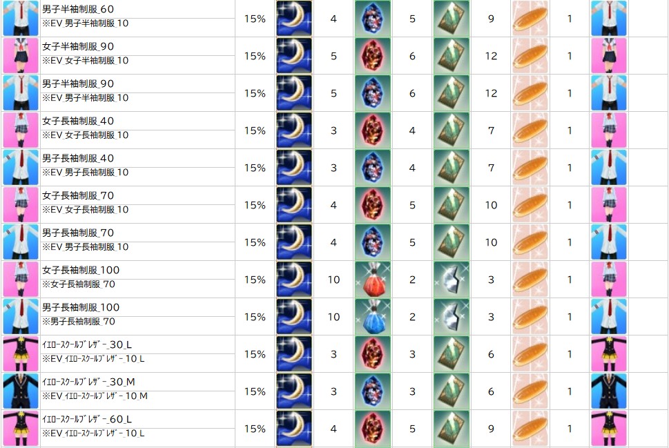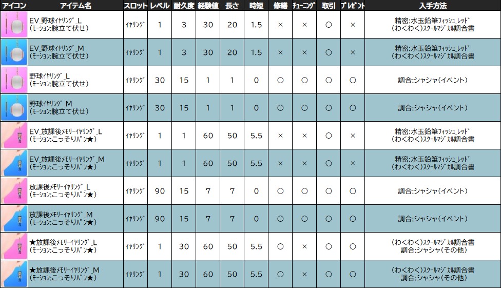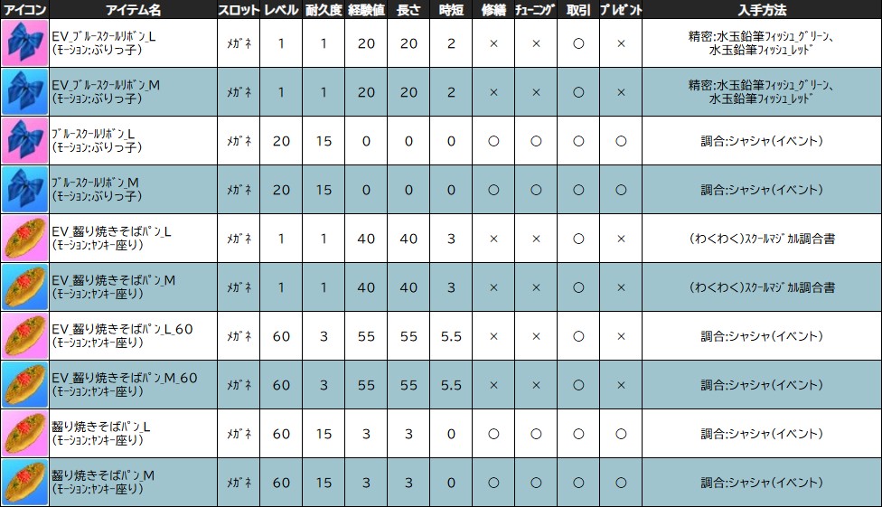 ※一部アイテムは男女性別を変更する調合公式があります。シャシャの調合メニューより、「その他」をご確認ください。