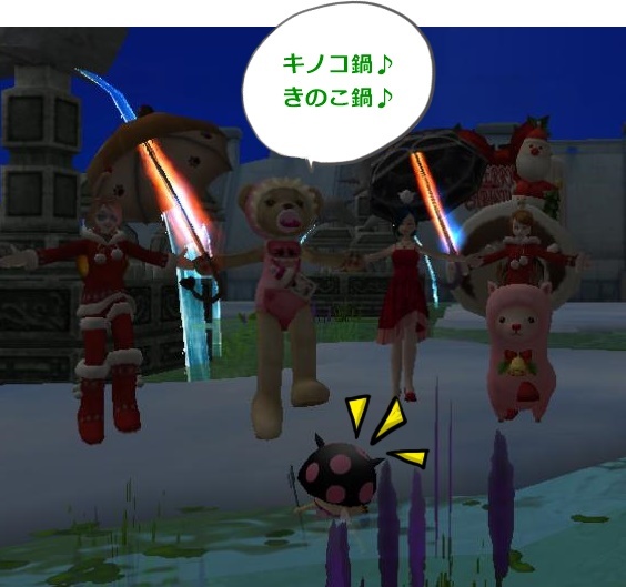 キノコ鍋に興奮気味