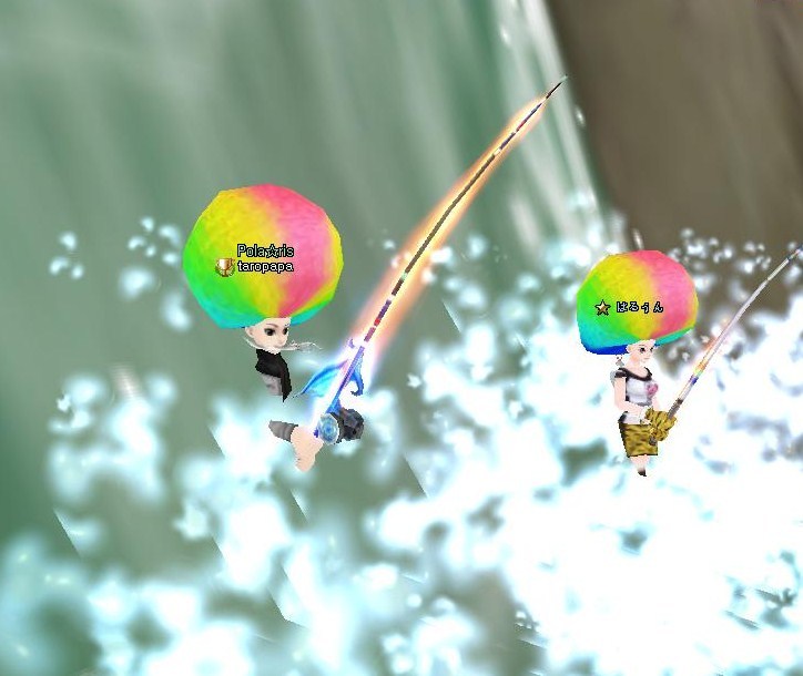 滝の中央で釣りw
