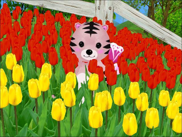チューリップと戯れるトラ