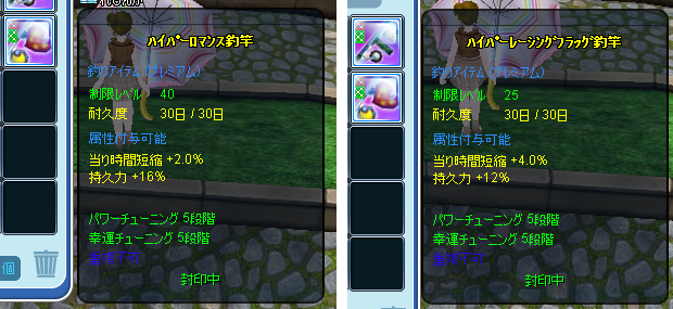 ハイパーロマンス釣竿(Lv40、プレミアム、草未使用)