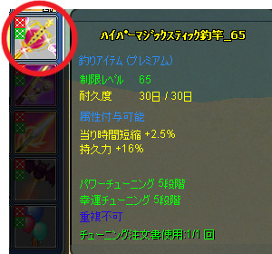 ハイパーマジックスティック釣竿_65(属性:時短+2.5%/持久力+16%、草2枚使用)を下記内訳でお譲りいたします