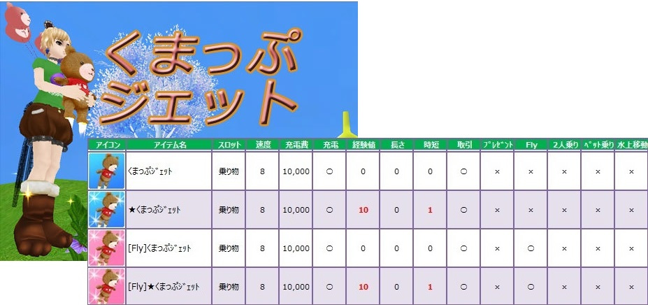 [求]くまっぷジェット 1:1での交換  flyや属性付きの場合は要相談