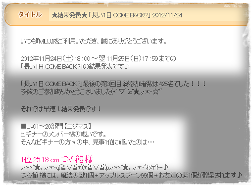 わーぃ、二週連続で入賞しちゃった。うれしいな。^^