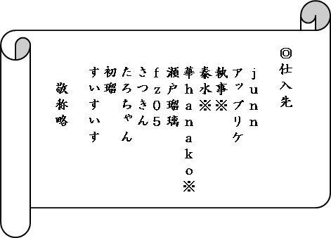 ※仕入先リストは最近頂き物やら借りものをいただいた方々ですが、