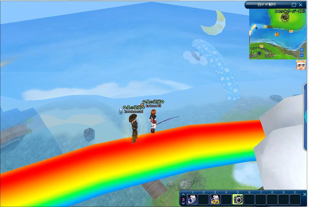 その後、うっかり下に落ちてしまったのですが、パパンに飛んだら虹の上でした^^