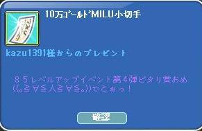 夜インすると、届いてました! カズさん恒例の・・レベアップ日記イベ☆  ヽ(=´▽`=)ノわーい、やった~ん♪ もひとつ当たってた~  あ・・ カズさん、85UP☆才×〒"├_〆(≧ω≦*)♪カキカキ‥ いつも、ありがとうございます♫