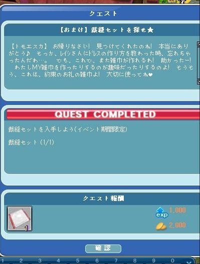 裁縫セットって何のことだと思ってたら・・・クエストだったのね!