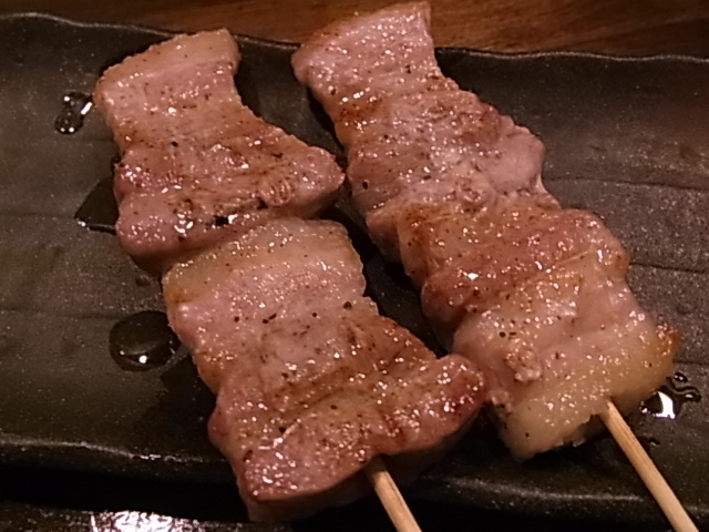 注文したやきとり(と言っても豚バラ串)が来た。