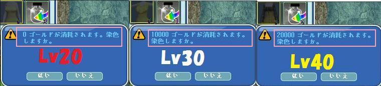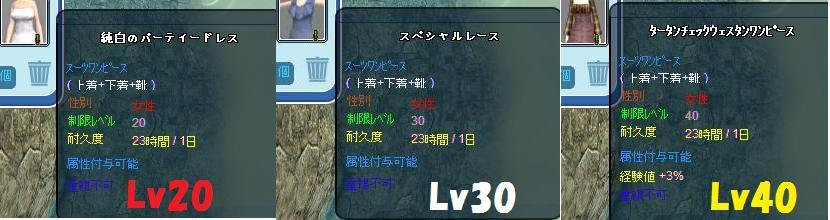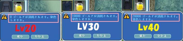 今回はLv20・30・40の服をレイシーで耐久1日分購入して染色&脱色してみました
