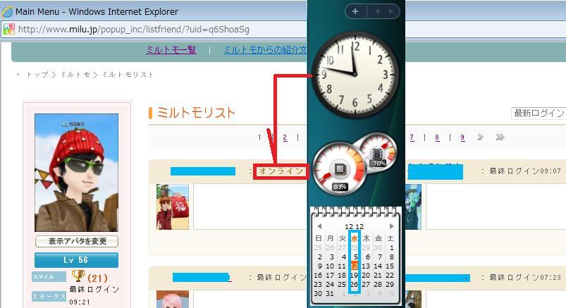 メンテの真っ最中にマイペのミルトモ欄を見てみると