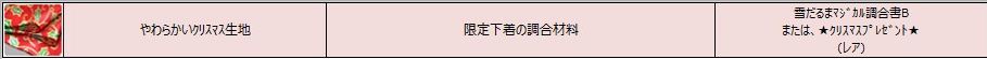おまけに100%調合ができるのかと思い、クリスマス生地と間違えて普通の「やわらかい生地」買っちゃいました(調合確率が悪くバッグに入れたまま。。。どうしよう