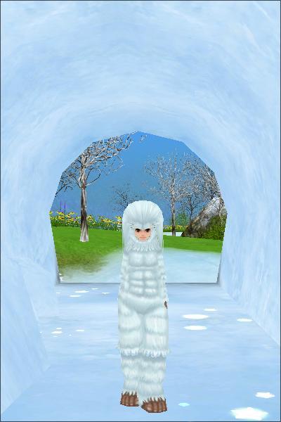 氷のトンネルで 記念撮影しました。
