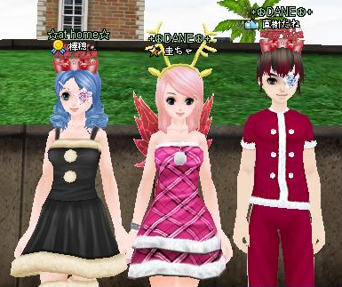 えーこれはクリスマス記念に贈ったコスをなみちゃんが着てる所。早く圭ちゃんも20までおいでー!^^後ろの熊ちゃんは寝オチ中w