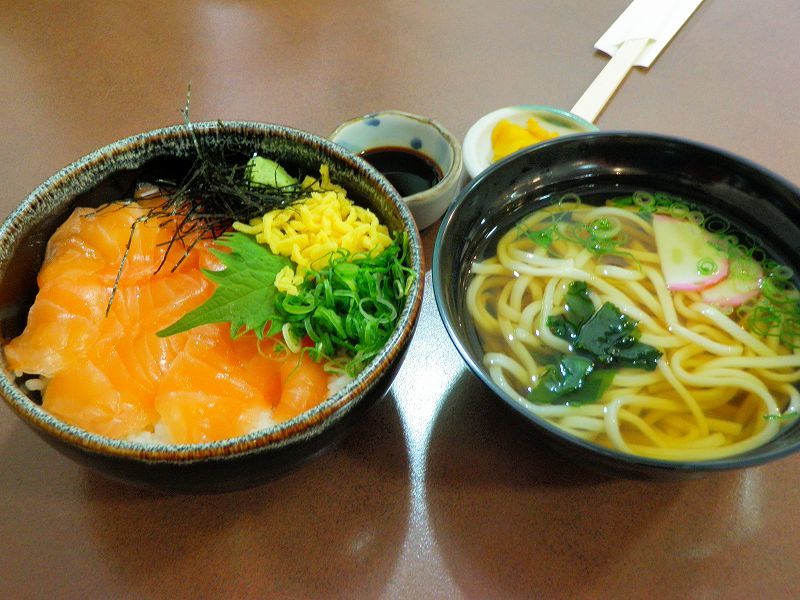 「サーモン丼セット♪ミニうどん付」・・・(*´-ω・)ン?コレがミニ??キラ――( ☆ω☆)――ン