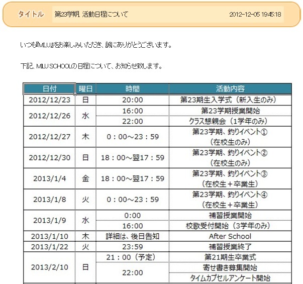 在校生の皆さんには、韓国版の公式からスクールミッション予定表をドウゾ。