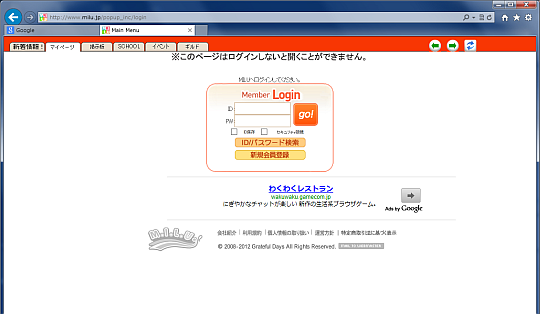 他のなんのブラウザ使うと、これが「IE以外」に見えるってのかな(´・ω・`) もう疲れたよ。今年からはWindows8ユーザも増えるってのに大丈夫か?このゲームはヽ(`Д´)ノ きちんとした返事がくるまでしばらく辞めよっかなぁ。