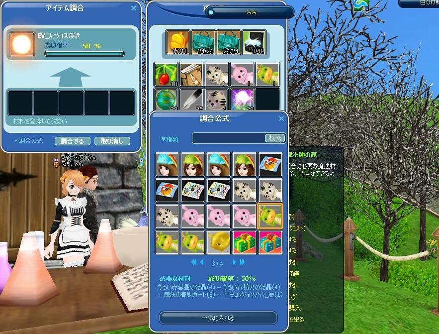 トラとウサギだけ、持ってた材料を使い何とかって感じですが調合完成(≧▽≦)ゞ 今年は調合運良いのかも・・・