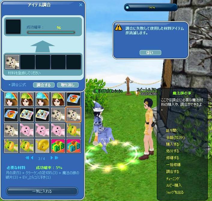 でもって、コンプしたコレブと材料を持ってシャシャ様へ・・・今年は調合もやってみっかと運試し^^;