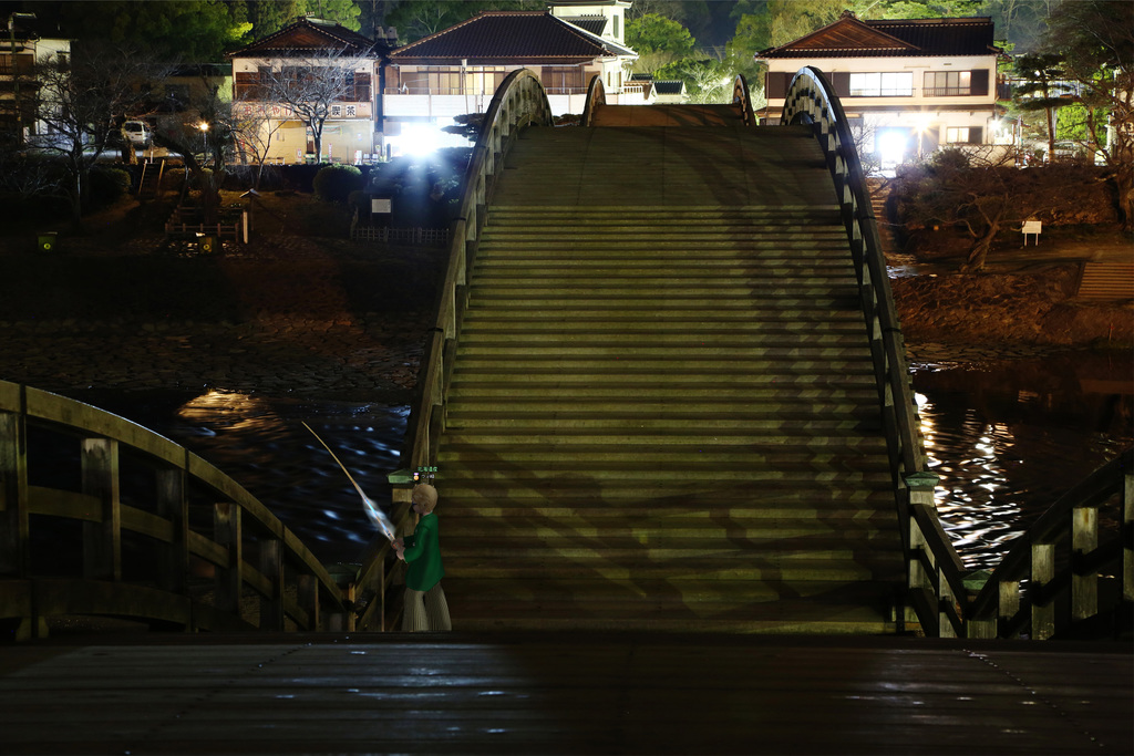 橋の上で一人、